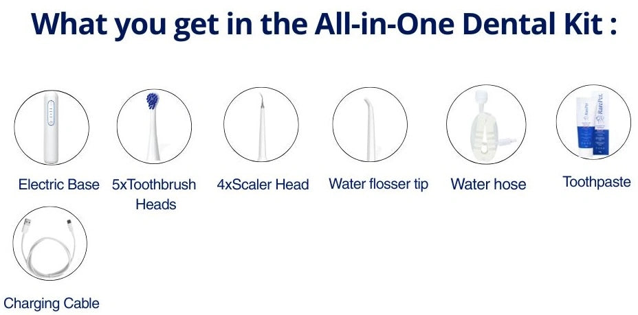 Unlike other products, our Sonic Tooth Cleaner features a unique water-floss system across all three heads: toothbrush, scaler, and flosser - for a deeper, gentler clean.